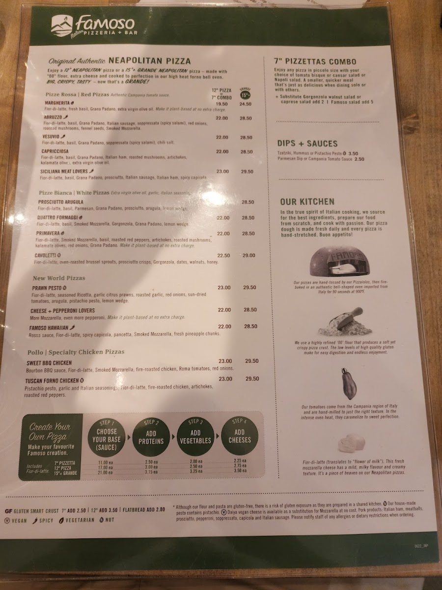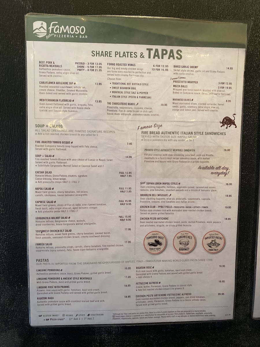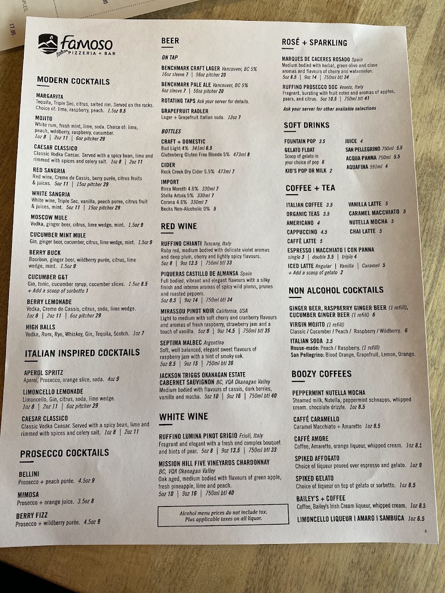 Famoso Italian Pizzeria - Jasper National Park Menu
